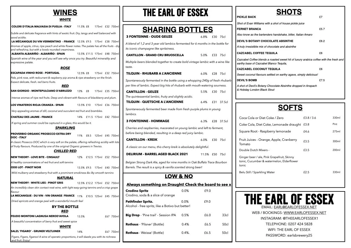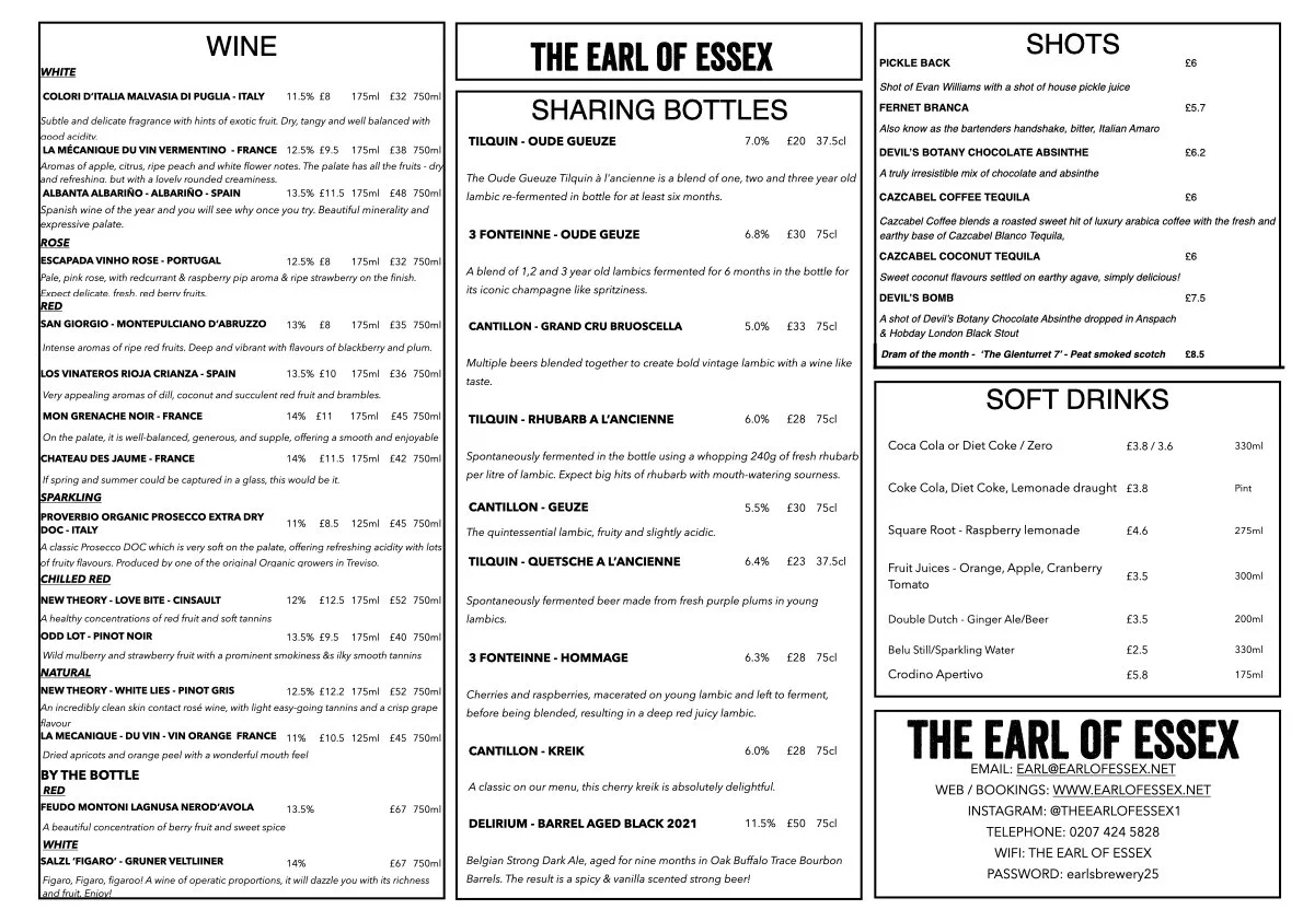 Below is a recent menu, please don’t be sad if the one you see is no longer on the bar! x